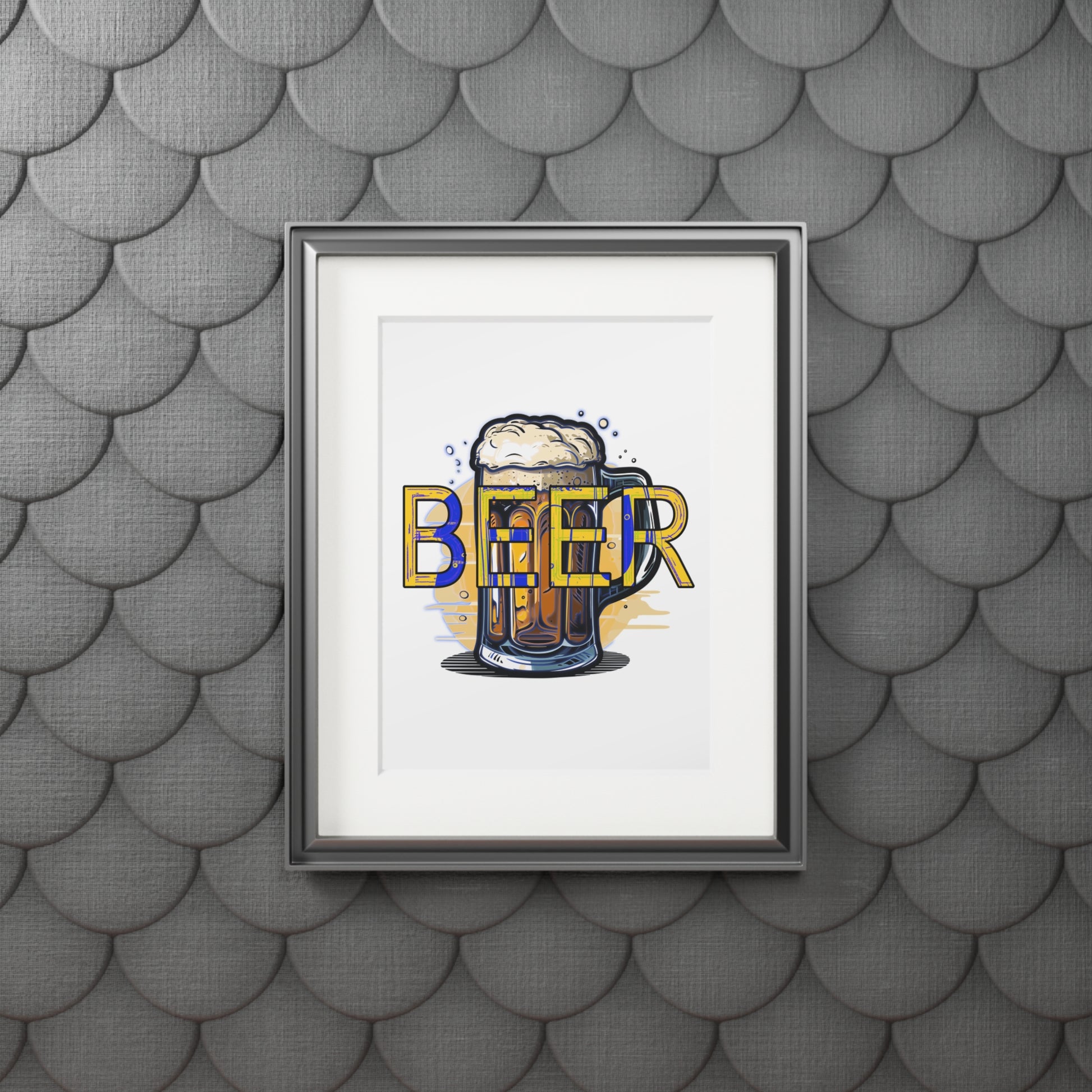 This fine art print brings a playful, vintage barroom energy into any kitchen, home bar, or rec room. Rich giclée inks render the frothy beer mug and bold typographic treatment with crisp contrast and lasting color. The image sits centered behind a natural-white, textured 2mm mountboard window that gives the artwork depth and a clean, gallery-like presentation. Lightweight and ready to frame, it arrives as a premium print on 175gsm fine art paper — an easy way to introduce personality and warmth to casual spaces.
