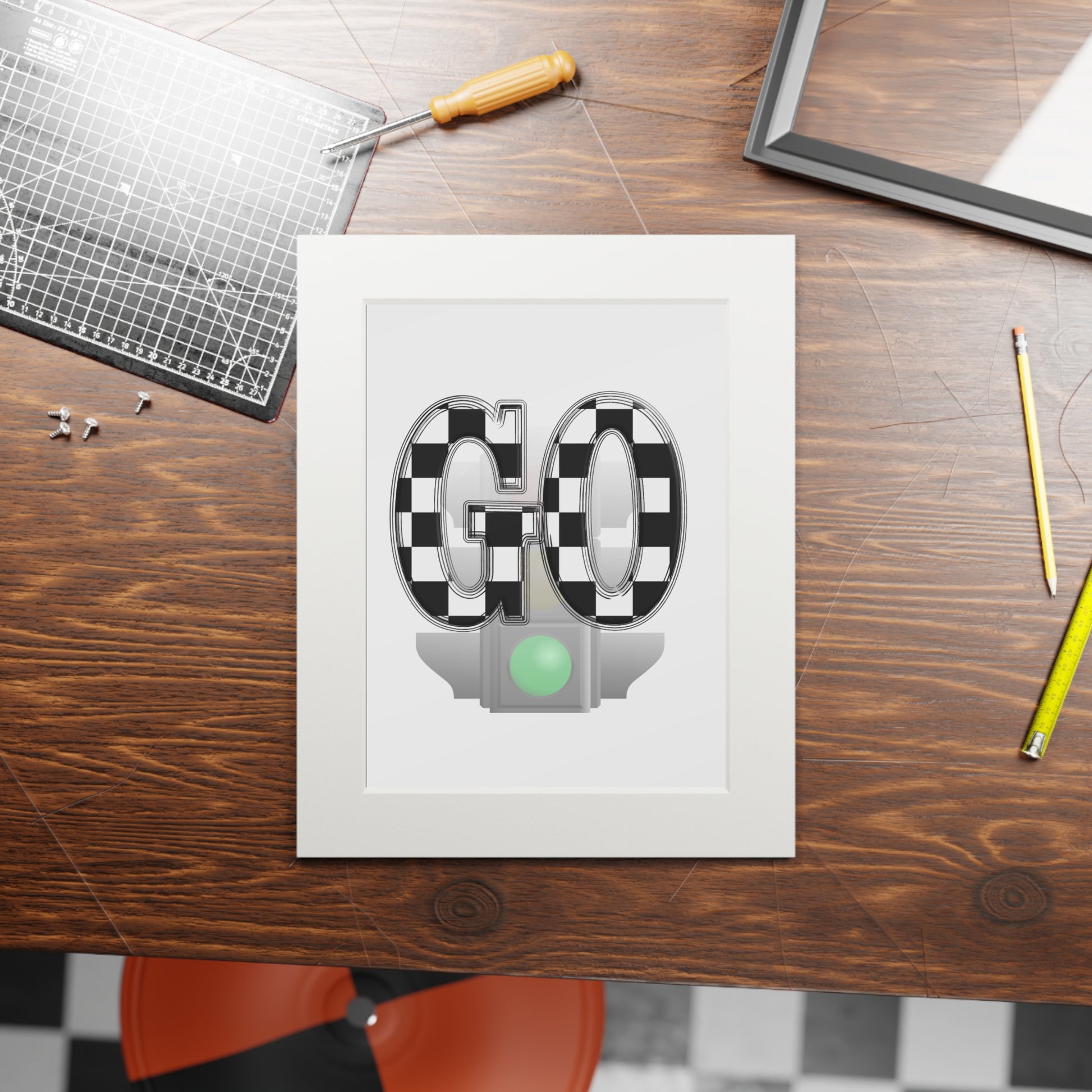 GO Checkerboard Fine Art Print (Passepartout Frame) — Minimal Racing Wall Art
