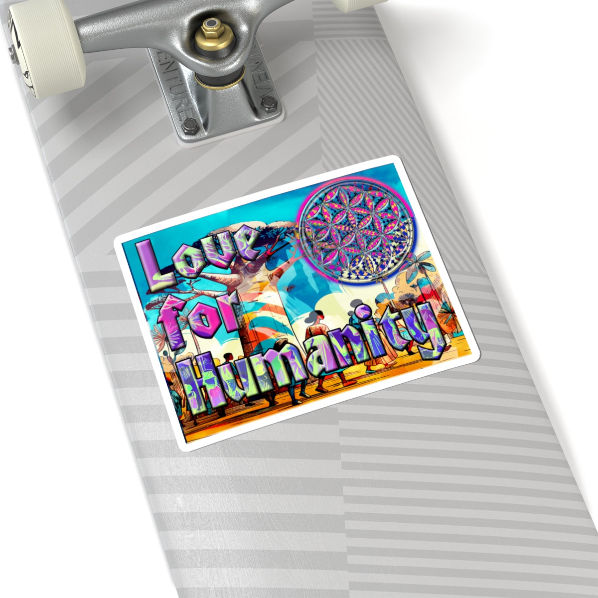 Love for Humanity Sticker — Colorful Psychedelic Flower of Life Kiss-Cut Decal