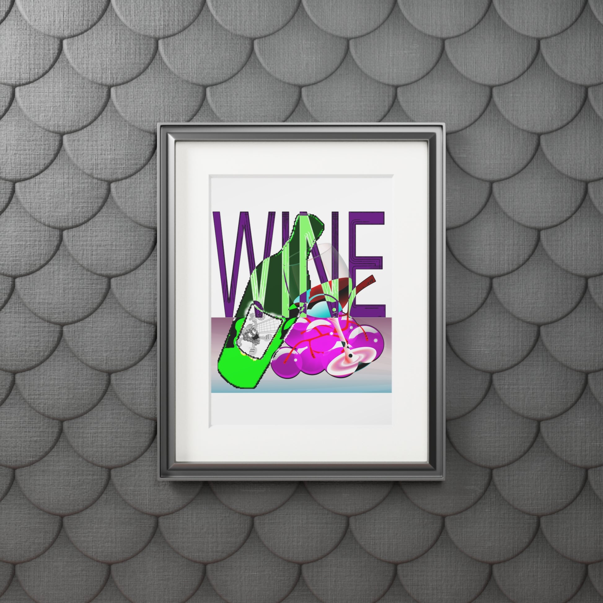 Wine Art Print with Passepartout — Pop Art Bottle & Glass Wall Decor